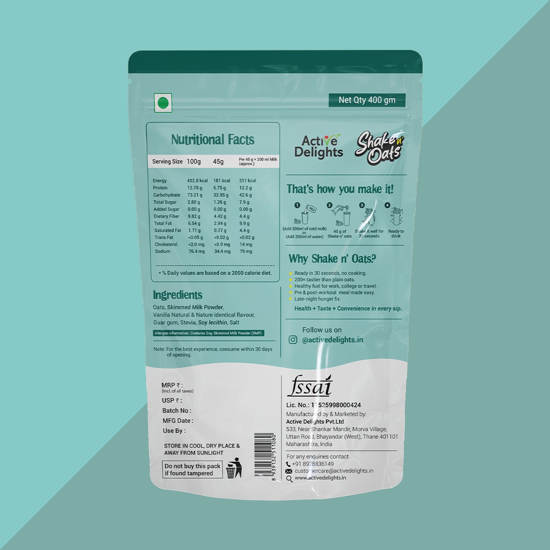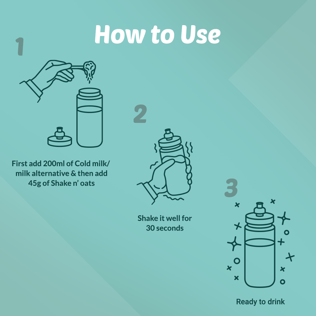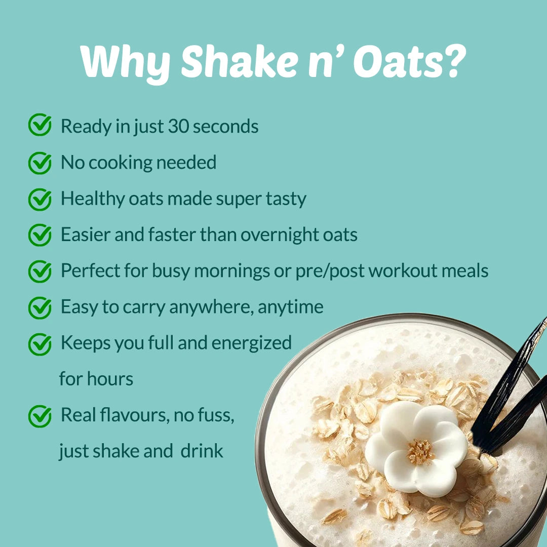Shake n’ Oats Vanilla is a smooth, drinkable oats shake with a light, refreshing vanilla flavor. Ready in just 30 seconds add milk or water, shake, and enjoy a quick meal that’s both tasty and nutritious.